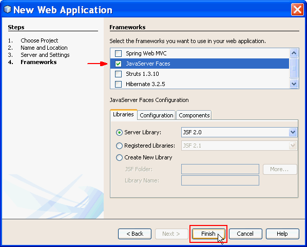 NetBeans provides a number of different project options. In this tutorial, you will create a Web Application project and use the JSF framework.