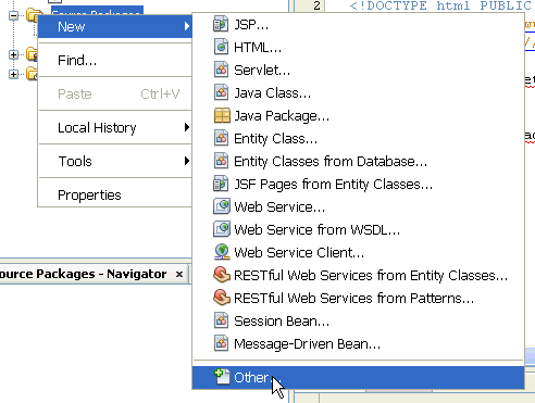 Expand the Project you created. Right-click on Source packages and select New -> Other.