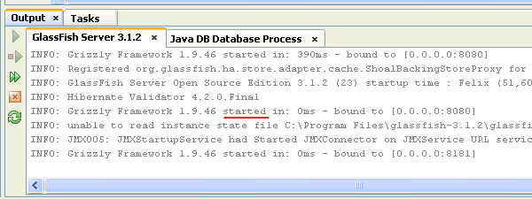 In the Output Window, you should see the GlassFish Server 3.1.2 console indicating GlassFish started.