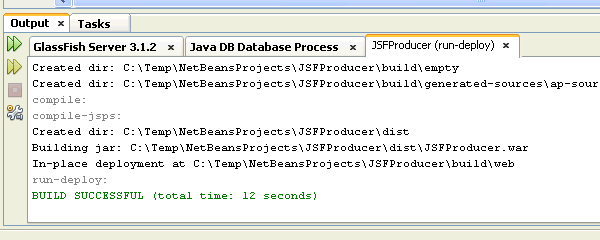 In the Output Window, you will see a message that the project JSFProducer built successfully.