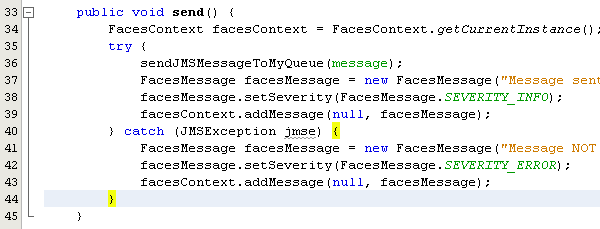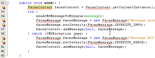 If the message is sent properly, a FacesMessage is added to the FacesContext instance that represents the current view page. The FacesMessage will be displayed to the browser client when the page is rendered.