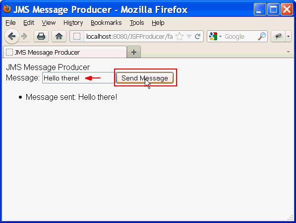 <h:commandButton value="Send Message" action="#{messageProducerBean.send}"/>