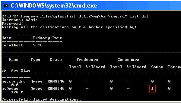 "C:\Program Files\glassfish-3.1.2\mq\bin\imqcmd" list dst