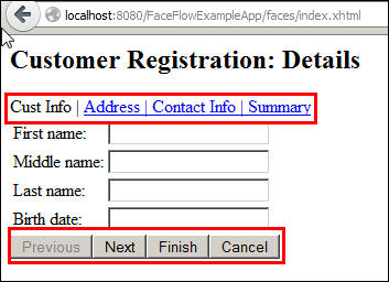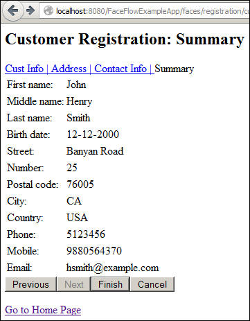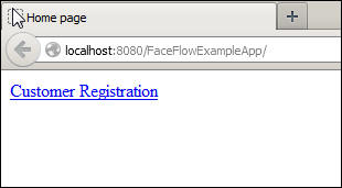 - On the home page, click the Customer Registration link to start a new Faces Flow.