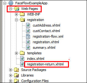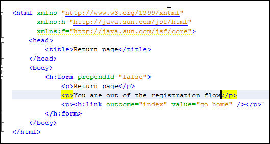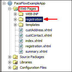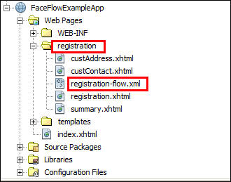In accordance with the Faces Flow convention, the name of the start node is the same as the name of the flow. In this case, it is registration.xhtml.