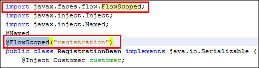 @FlowScoped ("registration")annotation in ReregistrationBean.java. - Import the appropriate class.