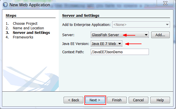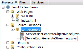javax.json.streampackage contains a parser interface and a generator interface for the streaming model (similar to the StAX API for XML). - Create a Java EE 7 web application