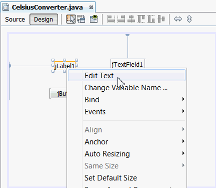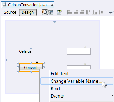 a. Right click the Convert button and choose Change Variable Name from the menu, set as CelsiusButton, and then click OK.