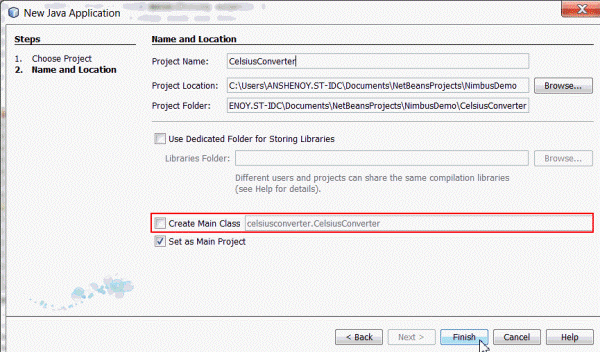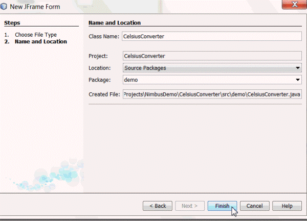 Name the GUI class CelsiusConverter, package name demo, and then click Finish.