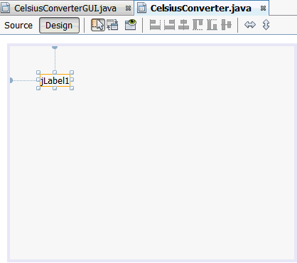 To add a JLabel, drag a JLabel from the Palette to the upper left corner of the Design area.