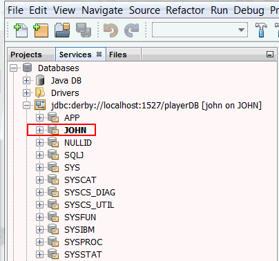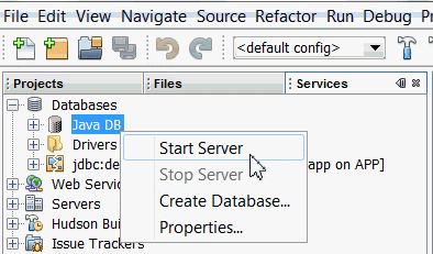 To start the Java DB Database from NetBeans, perform the following steps. a. Click Services tab.