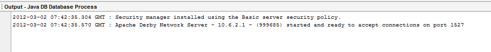 Note the following output in the Output window, indicating that the DB server has started: