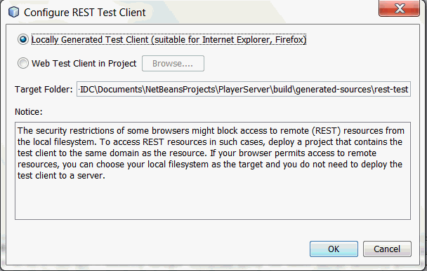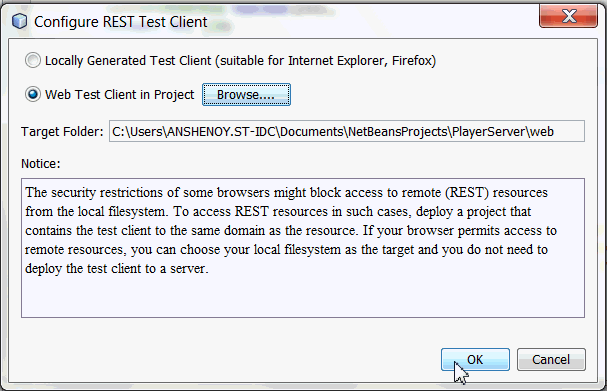 b. Configure Rest Test Client window is displayed, click OK.