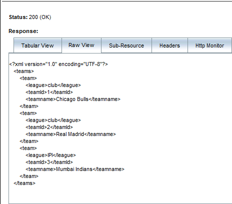 The test client sends a request and displays the result in the Test Output section. The test client displays the Raw View by default. d. Examine the output: Response to an application/xml request.