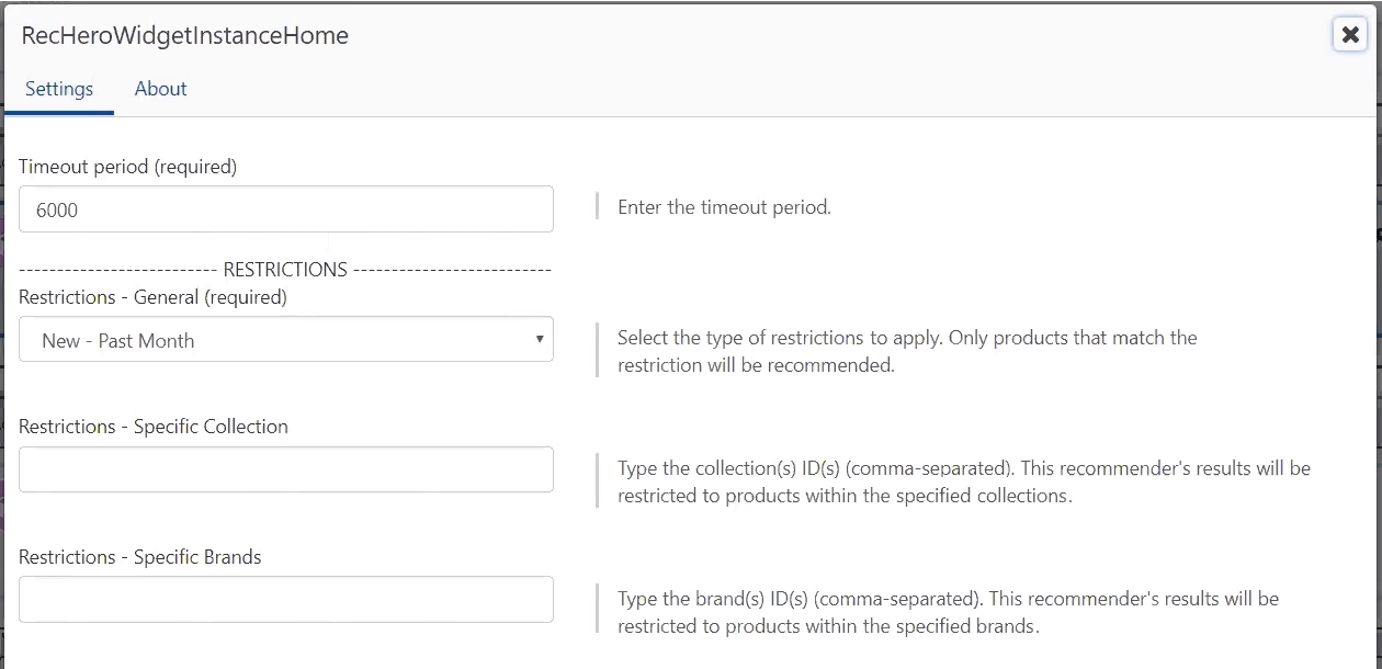 Use the predefined widget templates for Oracle Commerce Cloud or configure restriction filters in your widget code for third-party commerce applications. The following changes enable you to manage restrictions using more complex filtering:
