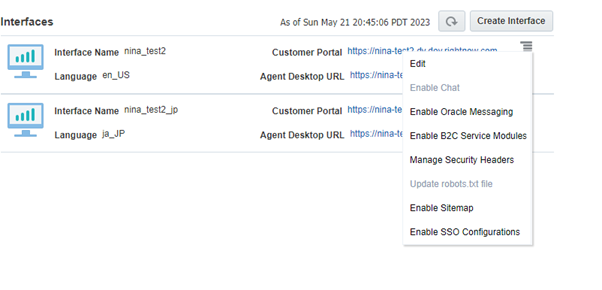 - Click the Interface Operations icon, represented by three vertical dots, and select Enable Oracle Messaging from the drop-down list