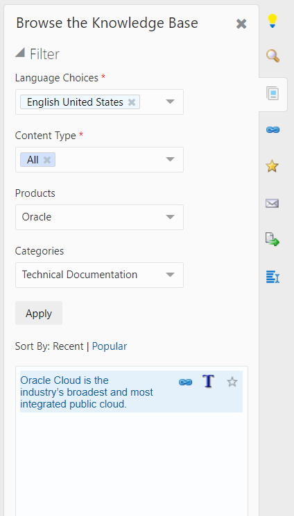 Browse answers allows agents to discover relevant answers using article attributes like content type, product and category, as filter criteria.