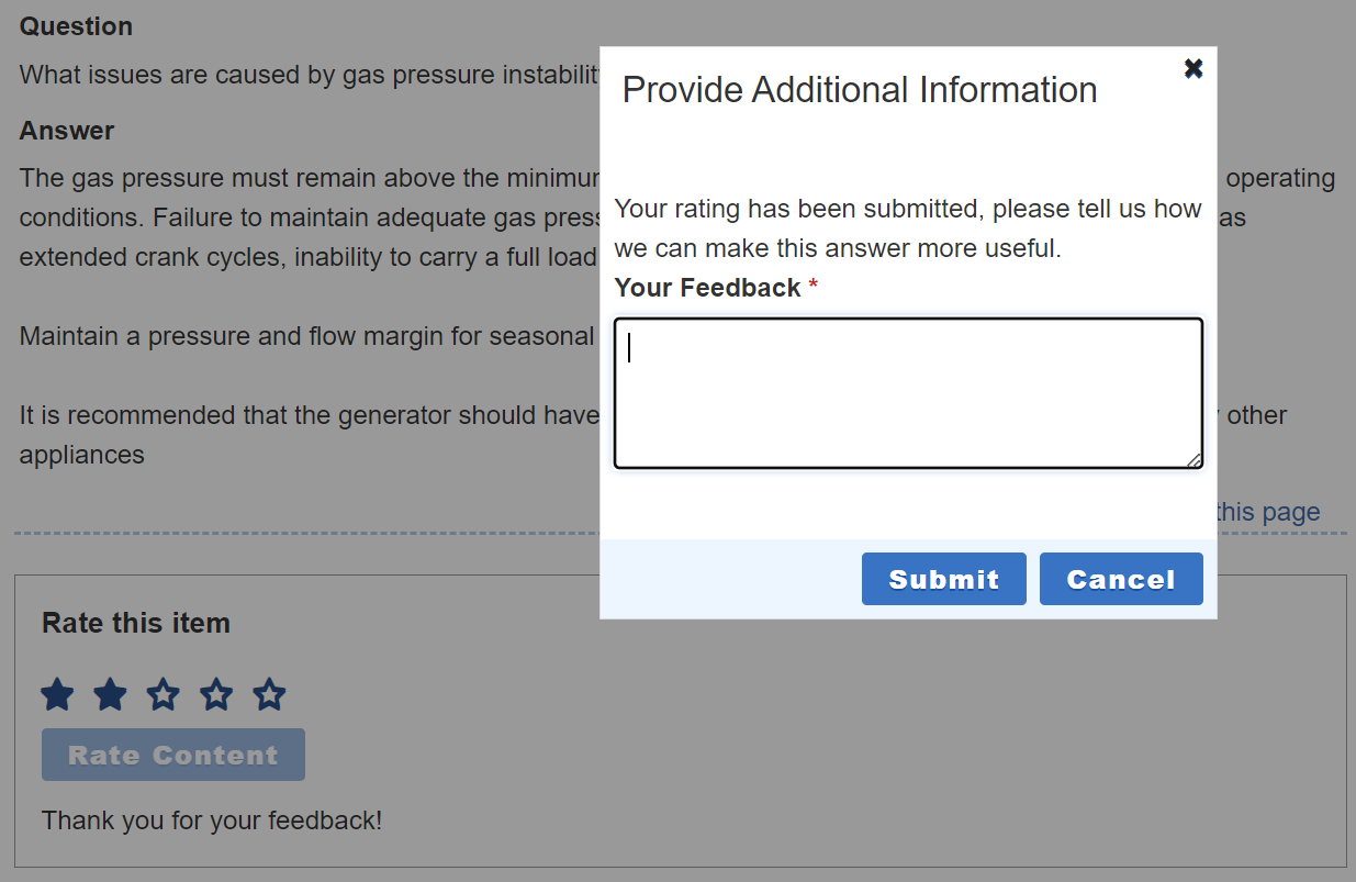 In Customer Portal it is possible for users to rate knowledge articles. If the user's rating falls below a defined threshold, the widget will ask them to leave textual feedback.
