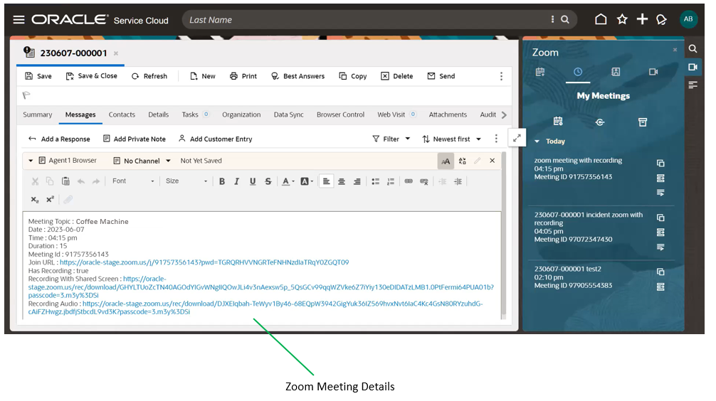 - Agent Browser UI: Add Zoom Meeting Details to a Private Note in the Incident Thread