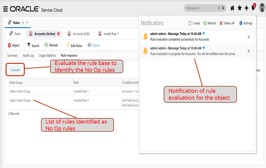 - Ability to identify the No Op rules periodically by executing the evaluation.
