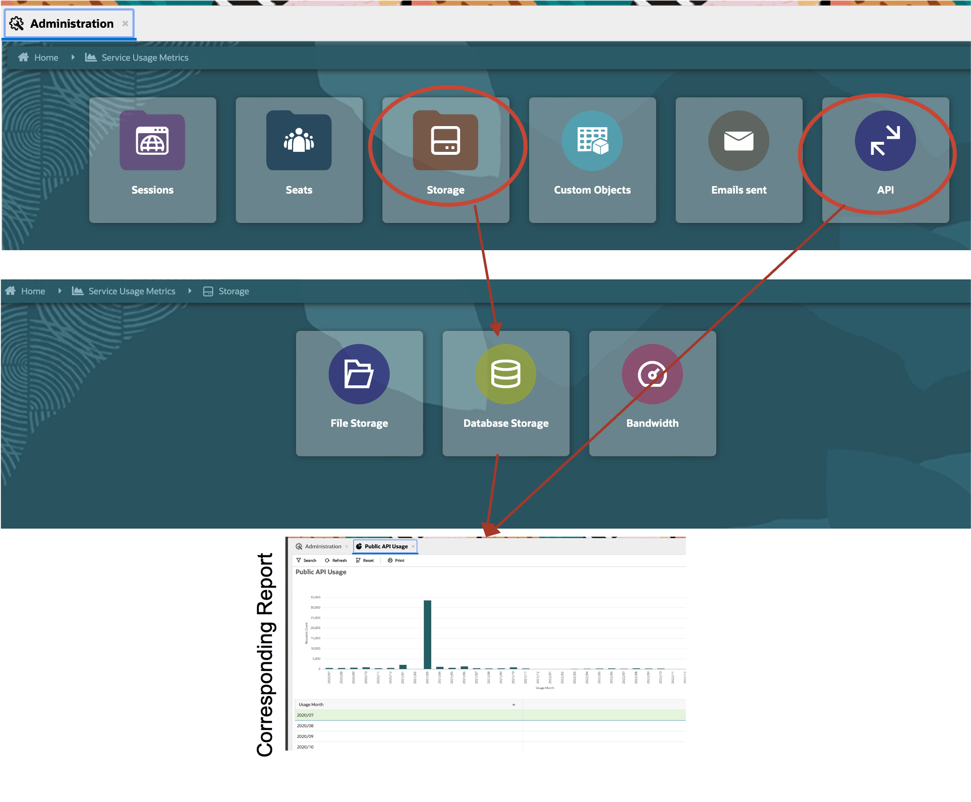 Administration | Service Usage Metrics: Monthly API Usage Report, File Storage, Database & Bandwidth Usage Reports | This feature is part of the 23C Quarterly update and requires a site upgrade. |