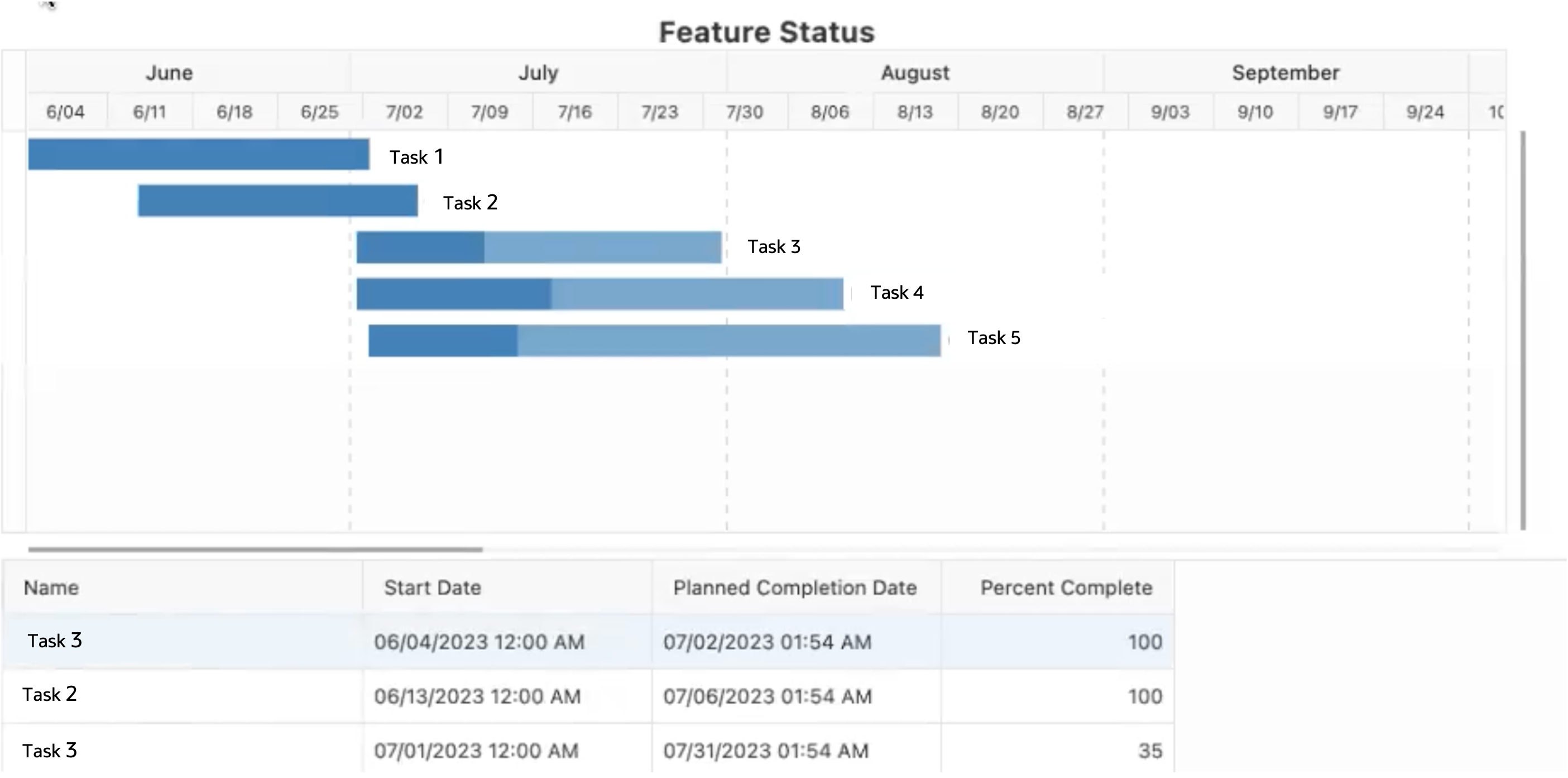 Report users can render and view the Gantt charts in reports designed using the .Net console in Browser UI. Gantt chart is a very powerful tool that can be used for effective project management
