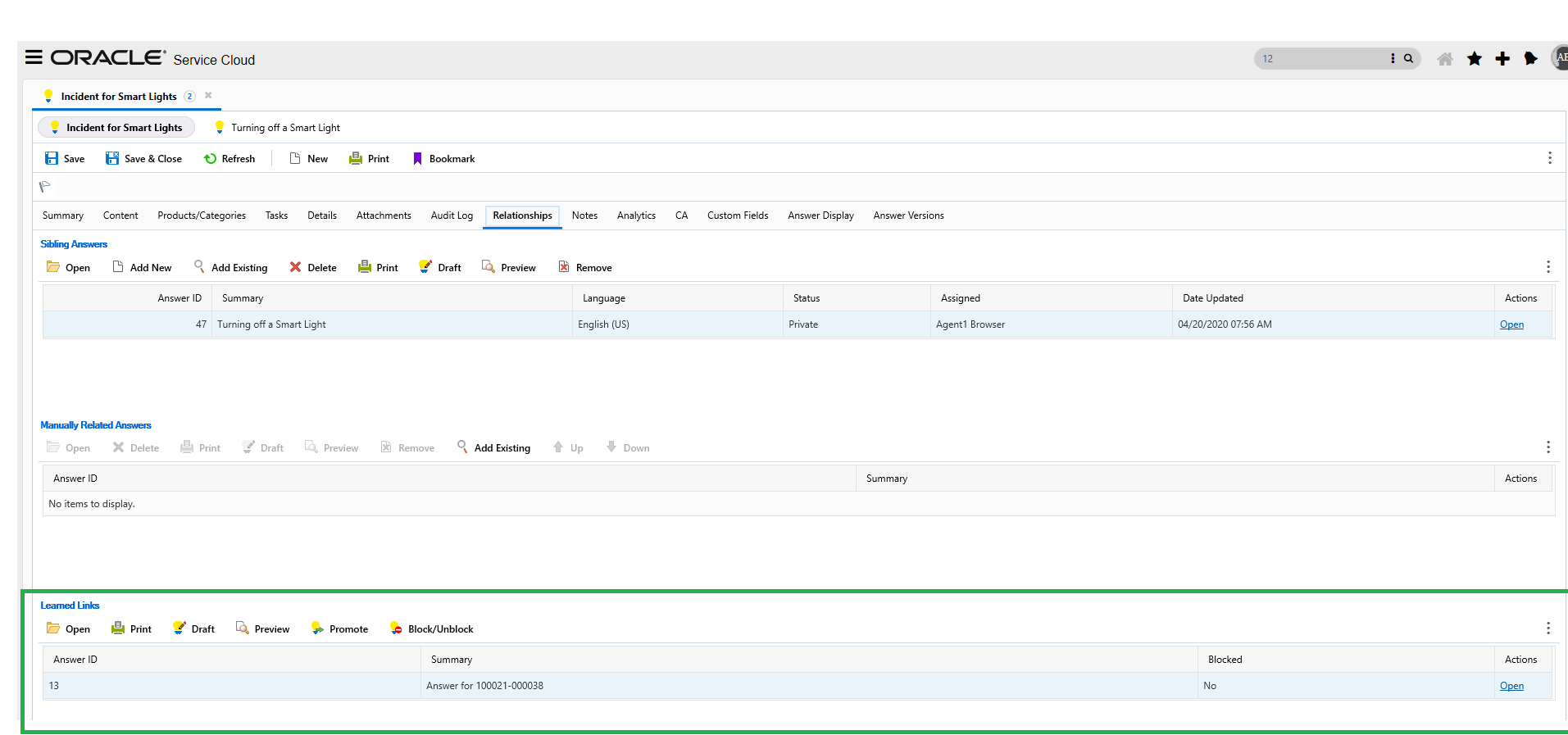 Learned Links Section on the Answer WS Under the Relationship Tab