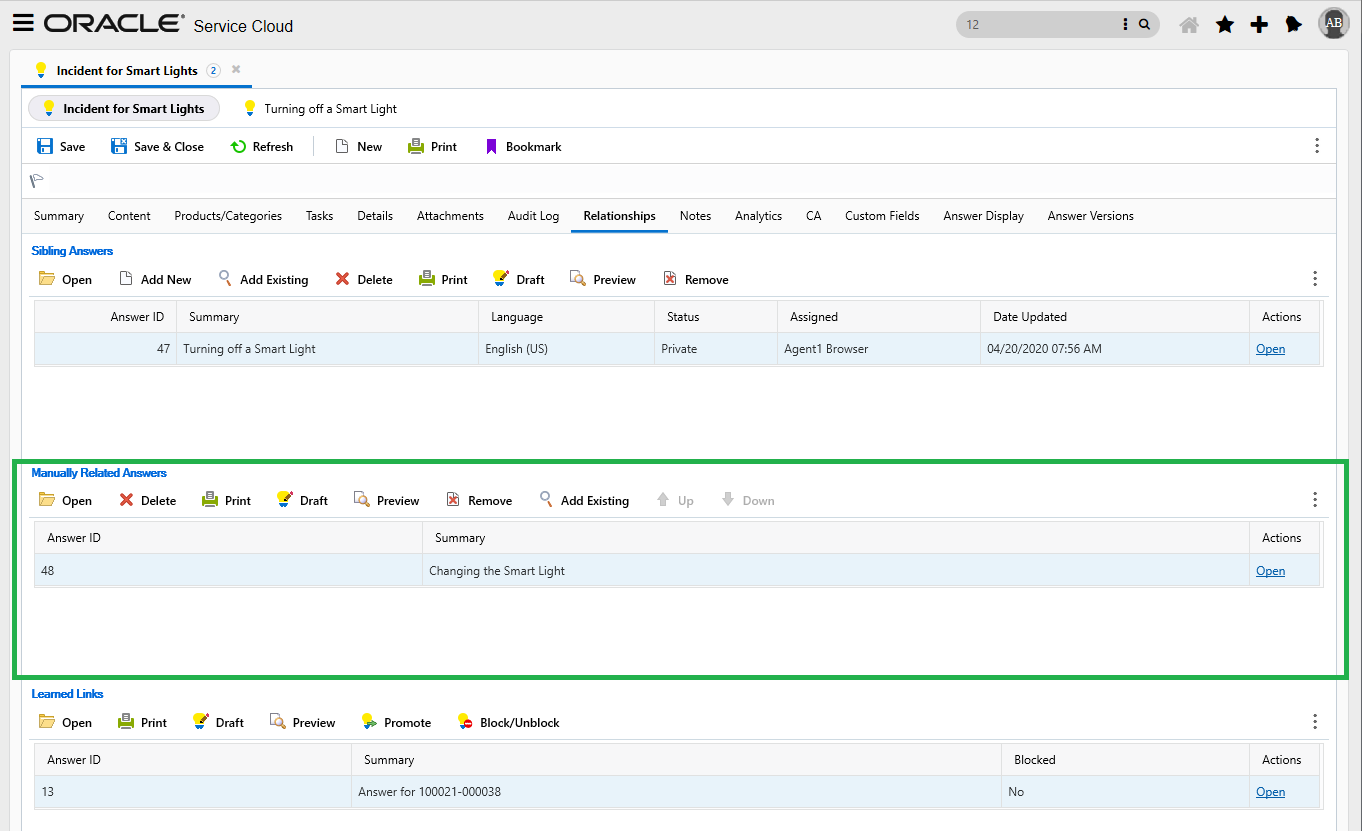 Manually Related Answers Section on the Answer WS Under the Relationship Tab