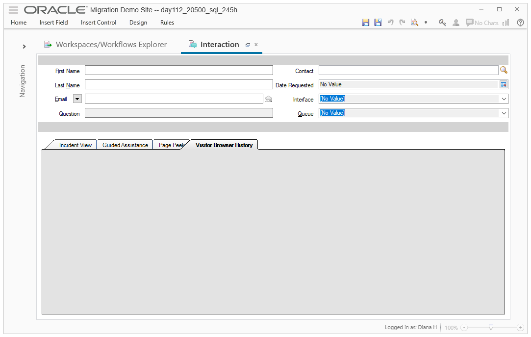 The Visitor Browser History control is now supported on the Interaction WS for chat in Agent Browser.