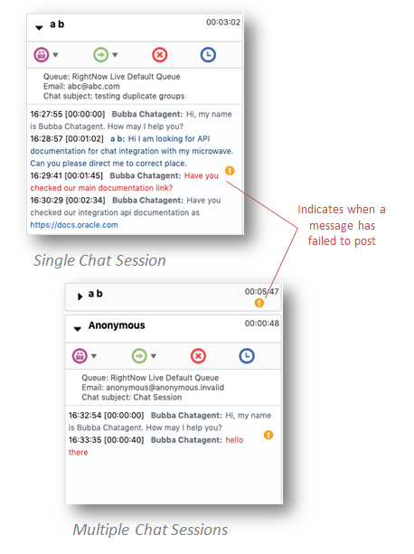 New functionality has been added to the Agent's Chat experience within the Browser User Interface, where chat messages that have not been delivered to the end-user are highlighted by the Message Post Indicator. Agents can now see the Message Post Indicator within the chat session, so they can easily see which messages were unable to reach the end user. This update should keep the Agent more informed if a network issue occurs.