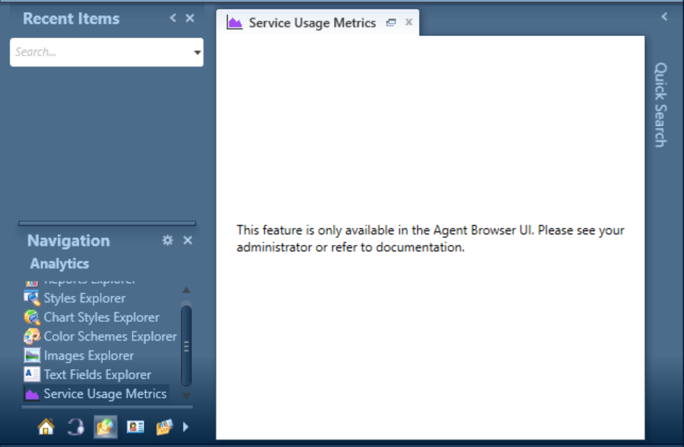 Using Service Usage Metrics is not available in the Agent Console. Users will see the message below if they attempt to access.