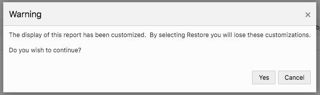 When you change display and data settings or column formatting to modify a report’s appearance, those changes are lost when you close the report. However, you can save your preferences for these settings as your default so they're used automatically when you next open the report. If you save default settings for a report and the report’s default settings are later changed, your saved settings are removed. Saved settings are user specific, so you must log in as the same staff account to have your saved settings applied to the report. See Change Your Personal Settings.