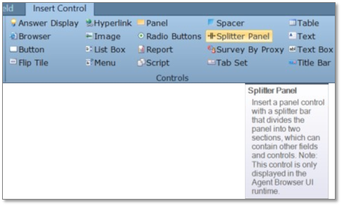 - Select the 'Splitter Panel' control and drag it onto the workspace