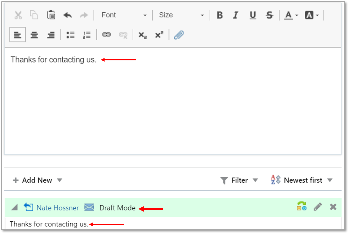 - When a draft thread entry is selected, the formatting toolbar appears on the selected thread.