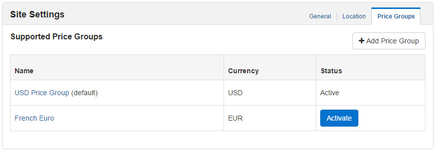 - A Price Group is a set of Price Lists (List, Sale, Shipping Surcharge) that has an associated currency and individual product/SKU price values