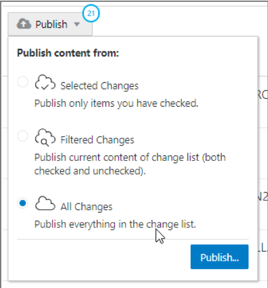 Second, we've made it easier to find the Publish All option which allows merchants the ability to publish everything in the change list.