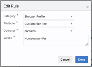 - The newly created property is then available within the CX Commerce Audiences UI under either Shopper Profile or Account.