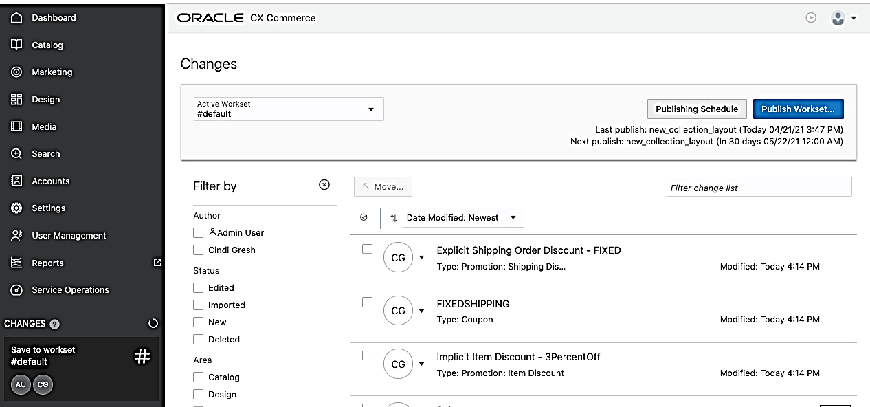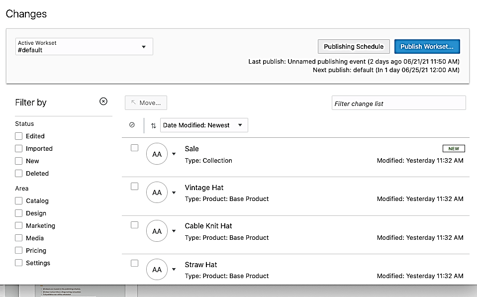 This Commerce update introduces a significant enhancement to the publishing functionality with the release of worksets. Worksets are a new way to selectively publish and are designed to provide teams with tools for better collaboration and visibility.