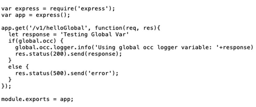 It is a best practice to check for the “global.occ.logger” variable, as shown in the following example: