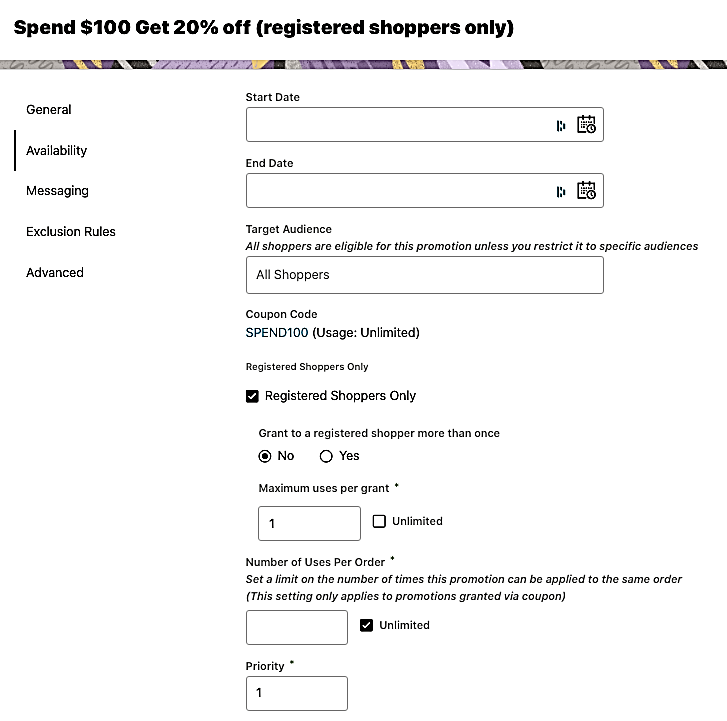 - Allows users to restrict promotions that use coupons to registered shoppers only.
