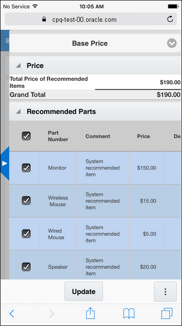 - The color scheme of CPQ mobile pages is more directly aligned with other Oracle products.