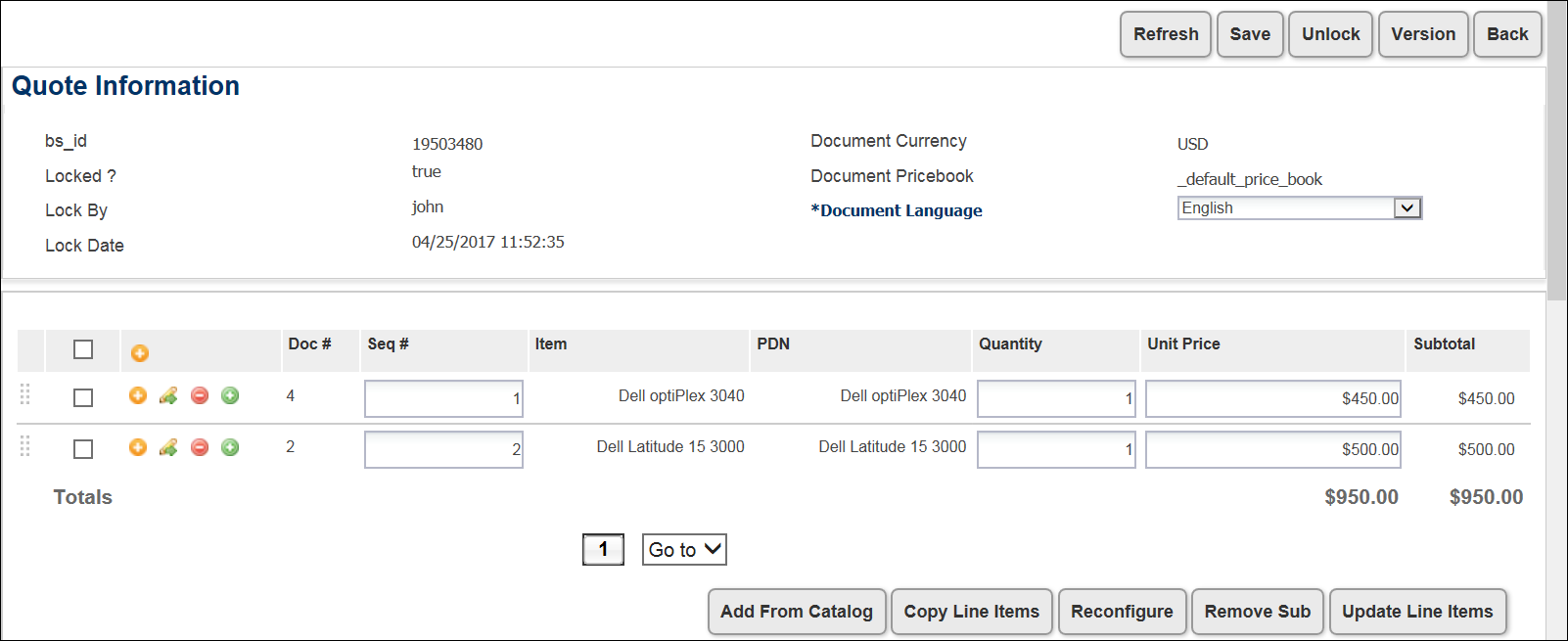 When users click Search from Transaction Manager, they can select the special attributes and main attributes to display as the columns in the search results. In CPQ Cloud 2017 R1, Lock Status, Locked By, and Date Locked are included as Special Attributes.