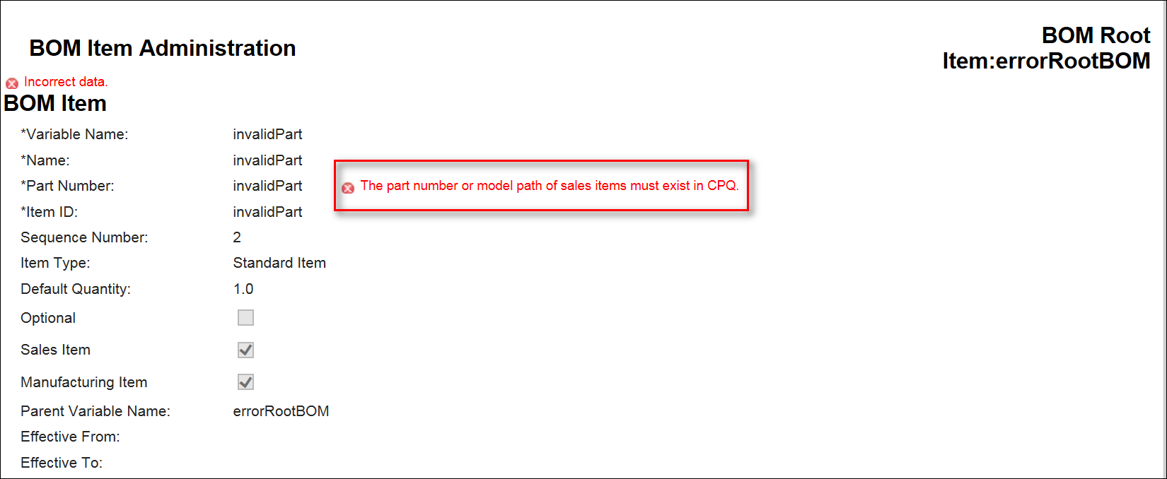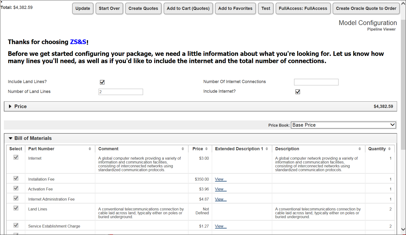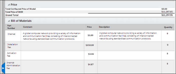 CPQ Cloud 2016 R1 provided administrators with the ability to view BOM Mapping Rule items in Commerce line items. In CPQ Cloud 2017 R1, administrators can also view BOM Mapping Rule items, including child sales items, in configuration. This enhancement allows administrators to view the items that will be included in a Transaction. The list of BOM Mapping Rule items that display in configuration corresponds to the line items created in a Transaction using BOM Mapping Rules.