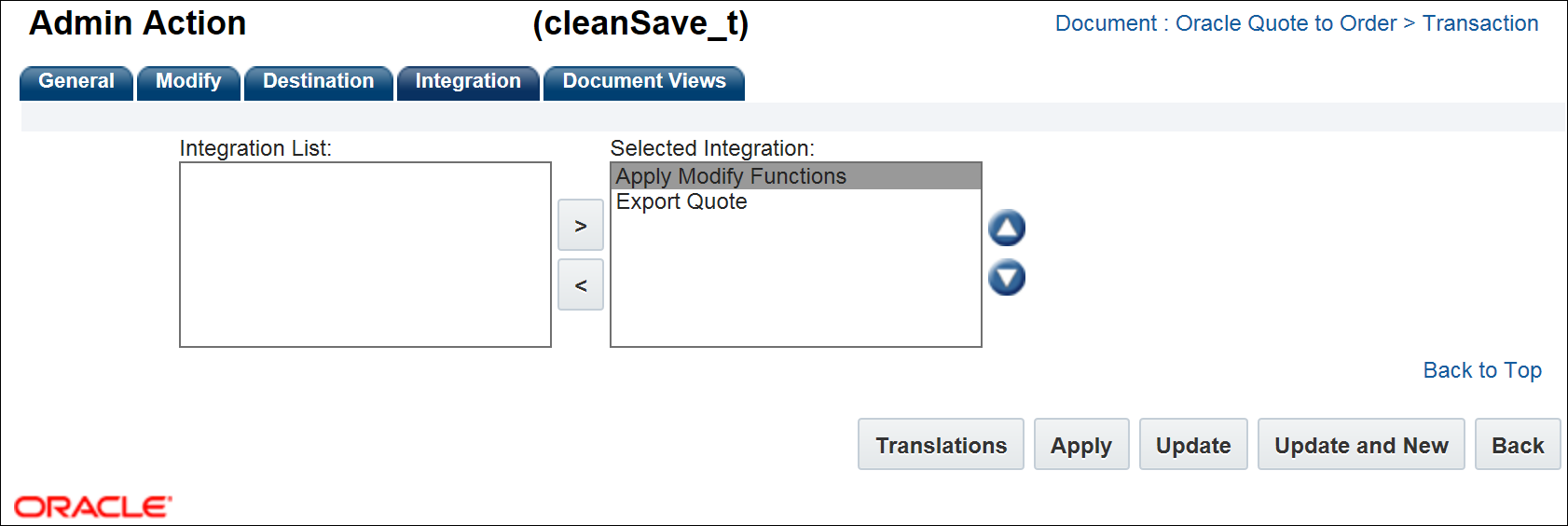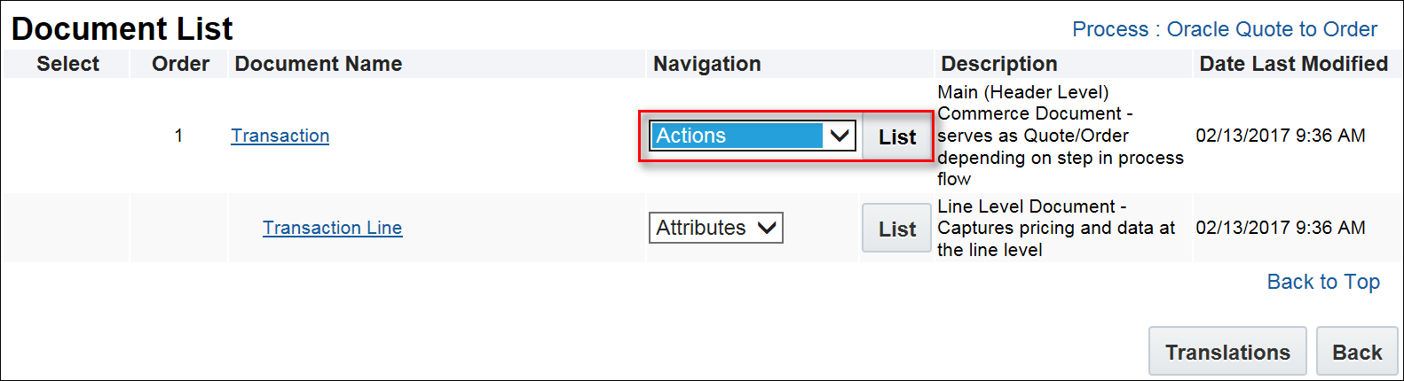 In CPQ Cloud 2017 R1, a Destination tab is available for all Commerce Back type actions. Since Modify actions are not available when opening a Transaction locked by a different user, administrators who need this functionality must create a Back type action and set the Destination tab appropriately. This functionality makes it easier for users to leave a locked Transaction.