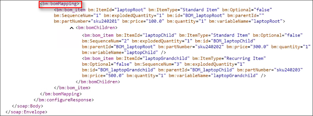 This release introduces the bomMapping element to the Configuration configure and getConfiguration SOAP APIs (v1 and v2). When the item is set to "true", the SOAP API returns the related BOM Mapping data.
