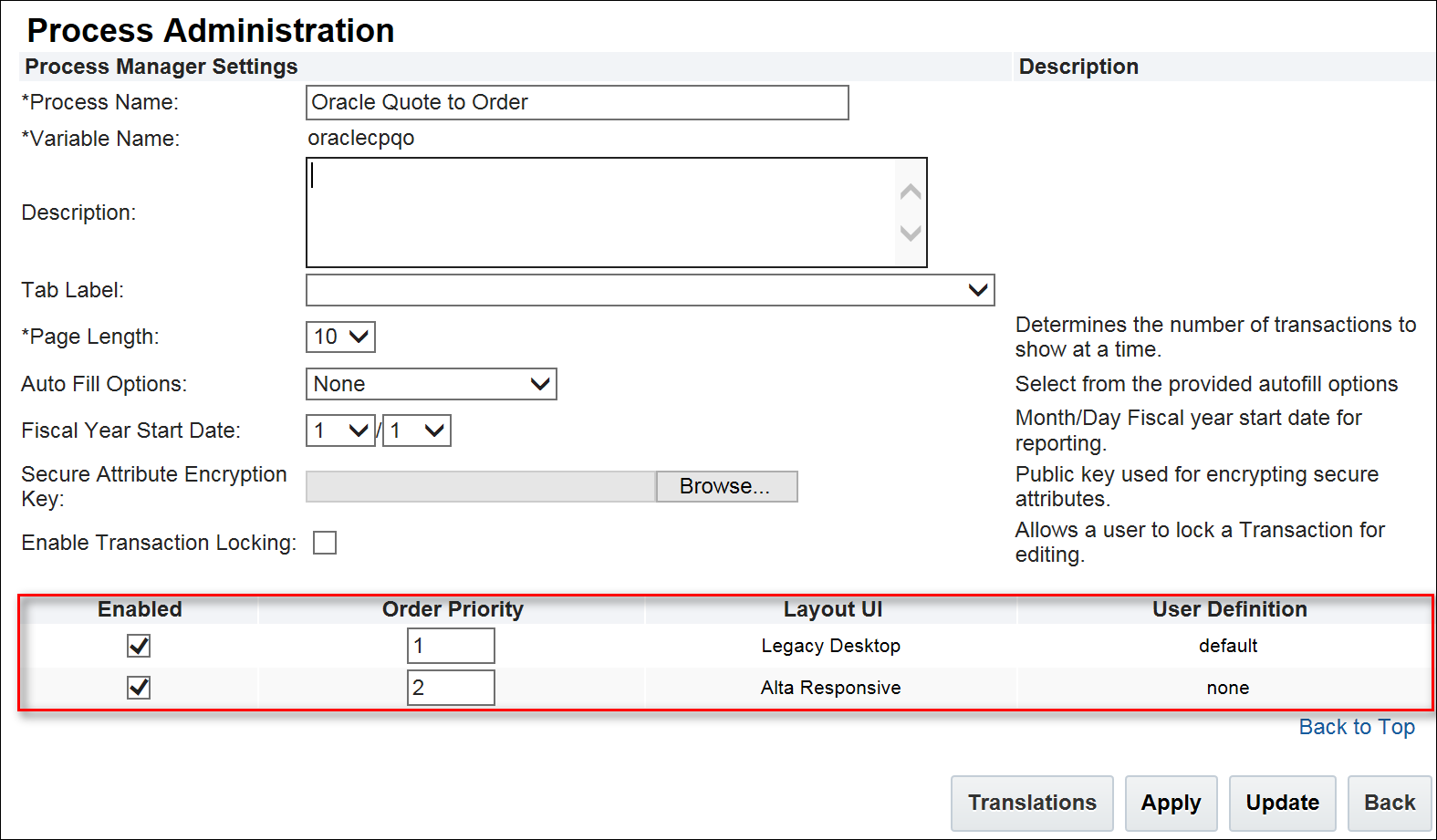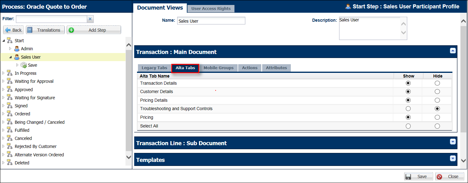 CPQ Cloud supports translations for Transactions, Transaction lines, and approval and menu attributes. Right to Left languages, such as Arabic, are also supported and will affect the alignment of text and elements in the Alta UI. |