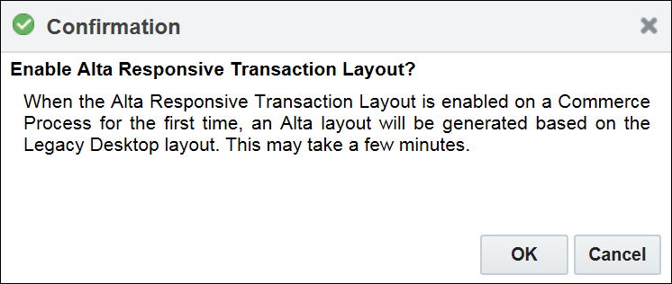 After enabling the Alta Responsive layout, administrators can migrate the layout as part of the migration for an entire Commerce process. The Migration Center reflects changes made to the Alta Responsive layout and allows administrators to migrate the changes between sites. Administrators can also enable or disable an Alta Responsive layout using the Migration Center.