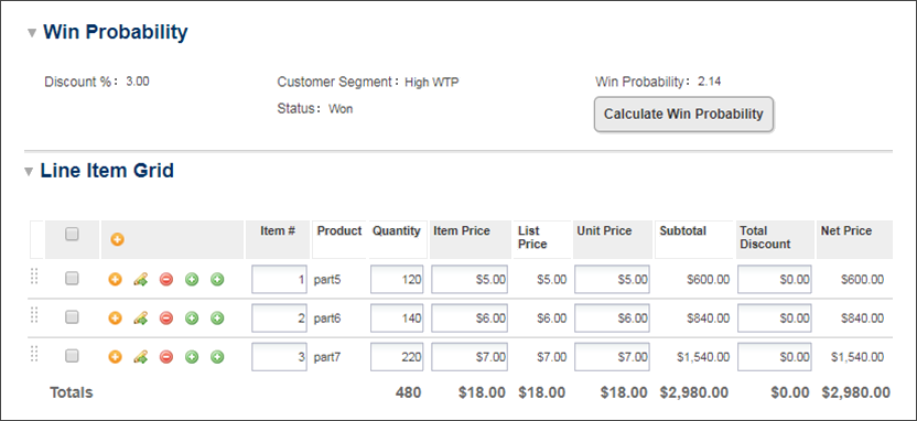 The Line Item Toolbar contains buttons that allow users to add, update, reconfigure, and remove line items from the line item grid. |