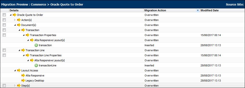 NOTE: The target site for the migration will preserve the access rights for user types but not access for user groups that differ between the two sites.