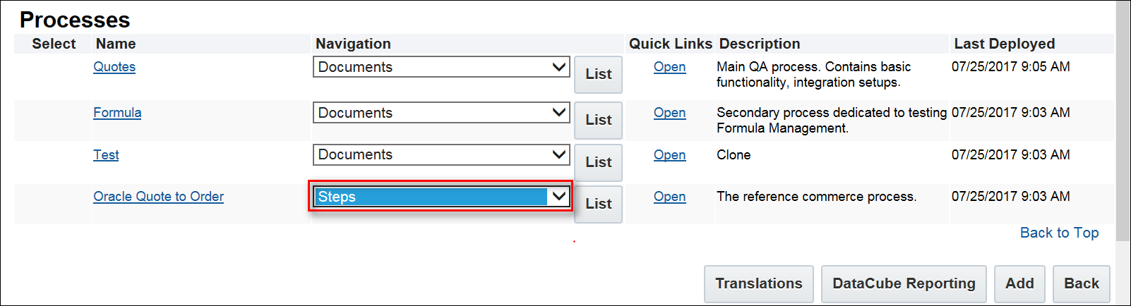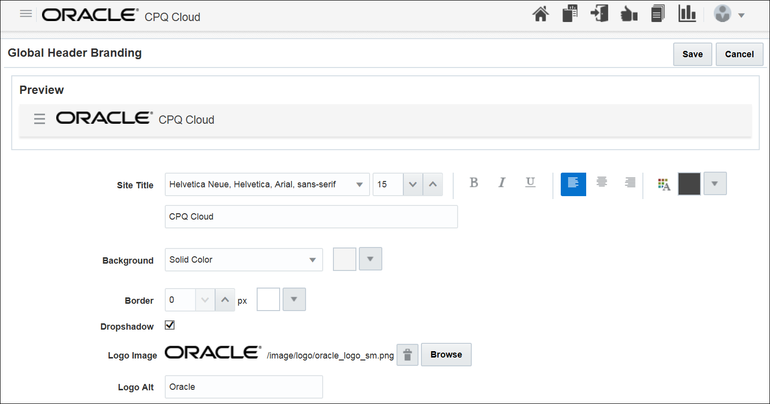 NOTE: CPQ Cloud 2017 R2 is the initial release of the Oracle Alta UI for CPQ Cloud. For detailed information about the Oracle Alta UI and its limitations, refer to the CPQ Cloud Administration Online Help.